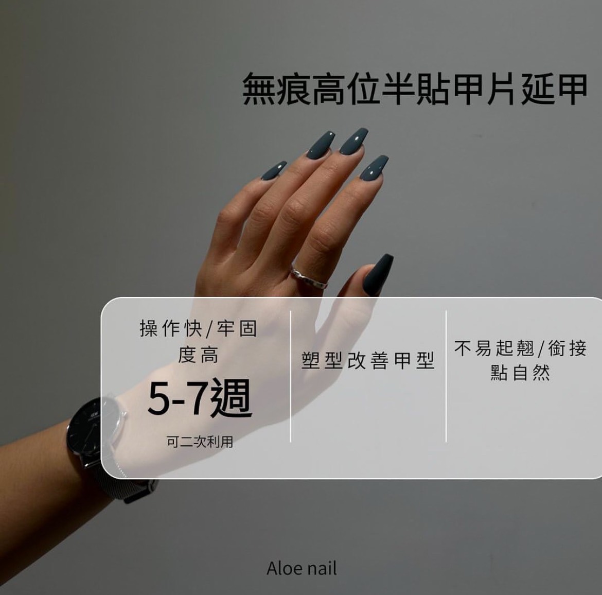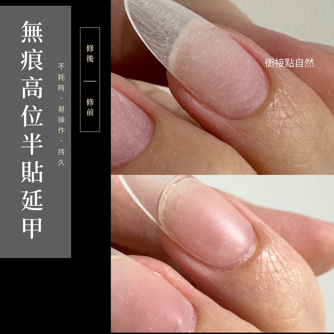 優點: 1.長出來無台階 後緣不起翹 邊緣自然 2.貼合較舒適 無緊繃感 3.持久度好 4.甲型好看且延甲速度快 5.可以二次利用
